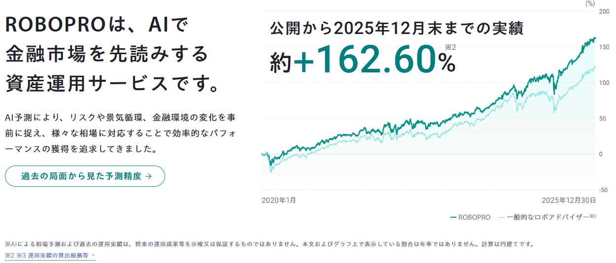 説明をそのまま読むと、「AI予測により、リスクや景気循環、金融環境の変化を事前に捉え、様々な相場に対応することで効率的なパフォーマンスの獲得を追求してきました。」とあります。