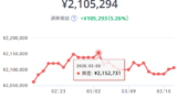 2020年1月に100万円スタートした場合の資産増加グラフです。すさまじい勢いで上がってますが、インフレが異常に進んでいるので、実質はここまで上がってないのだろうなと思うことにしてます。